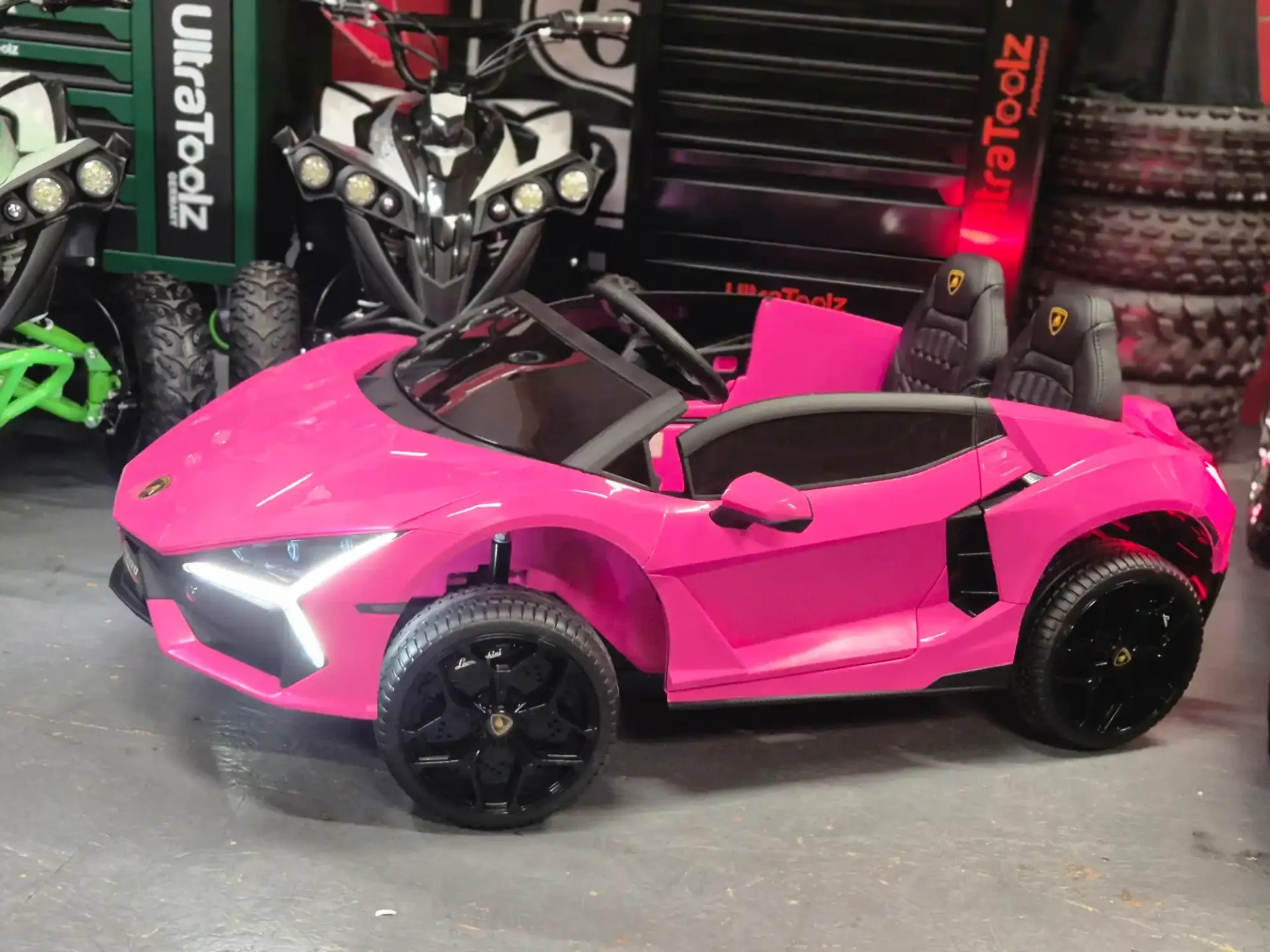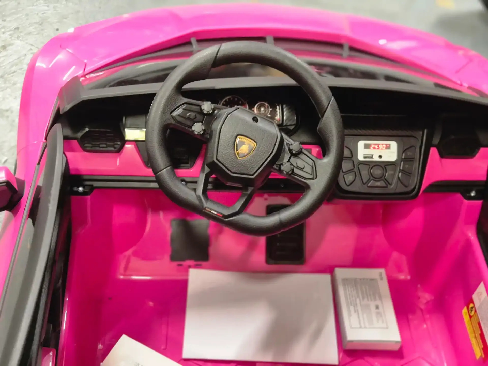 Cette Lamborghini Revuelto 24V est pensée pour accueillir 1 grand enfant ou 2 plus petits. L’intérieur est particulièrement soigné, avec un niveau de confort digne d’un modèle haut de gamme.